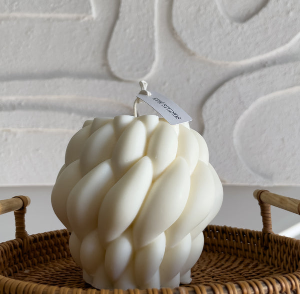 Due to their sculptural design, these candles may burn irregularly, creating unique wax drips around the base. We recommend placing them on a heat-resistant dish while burning.